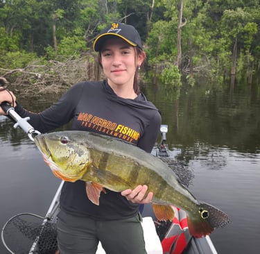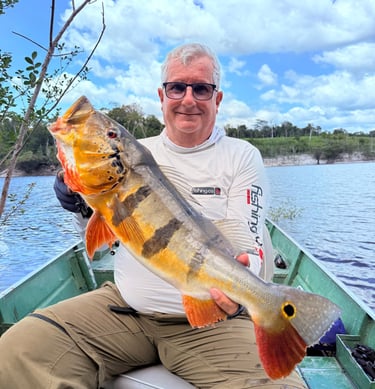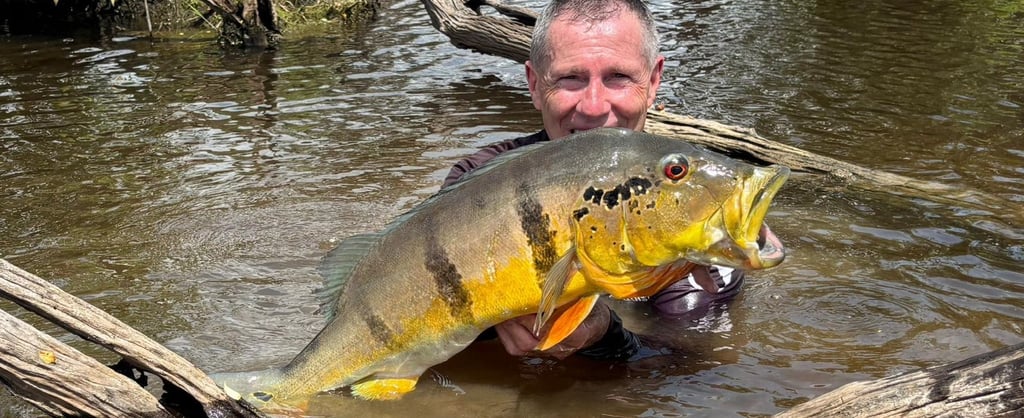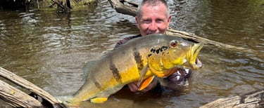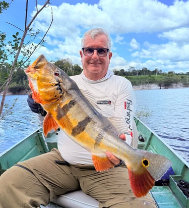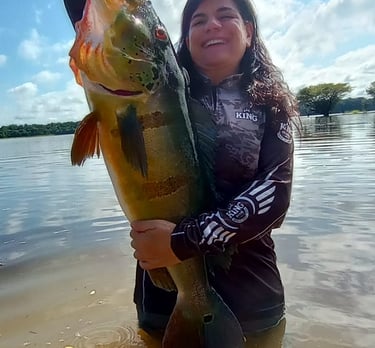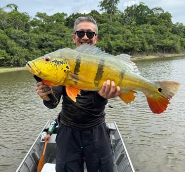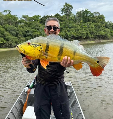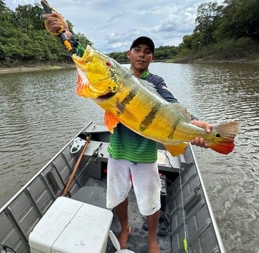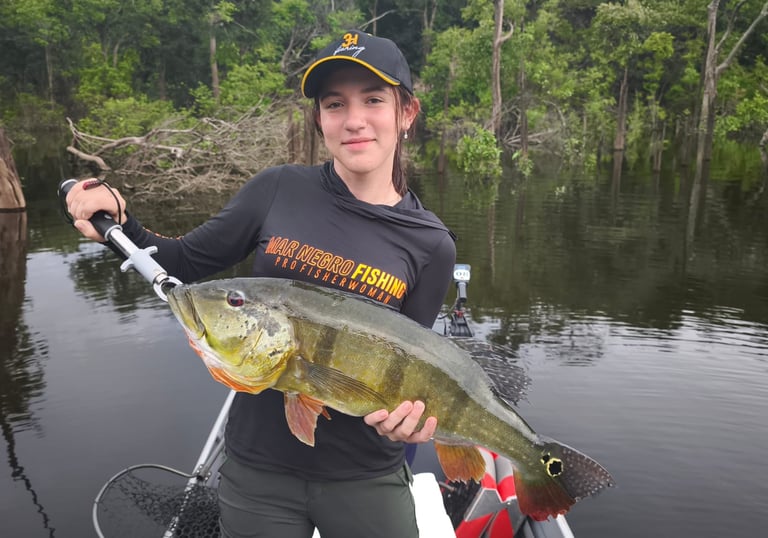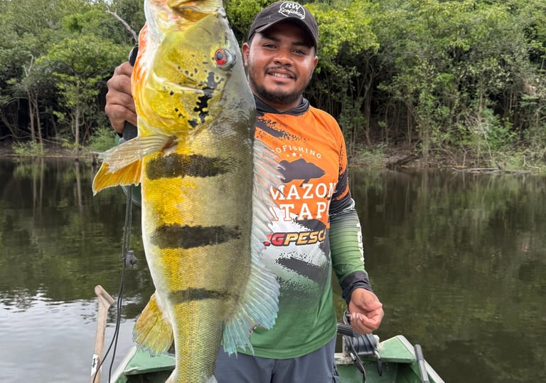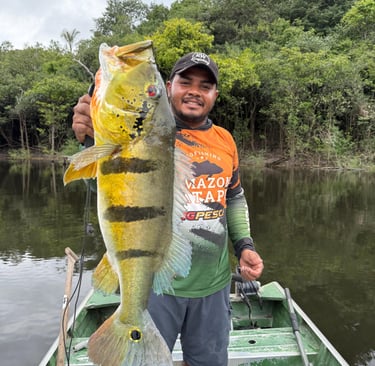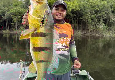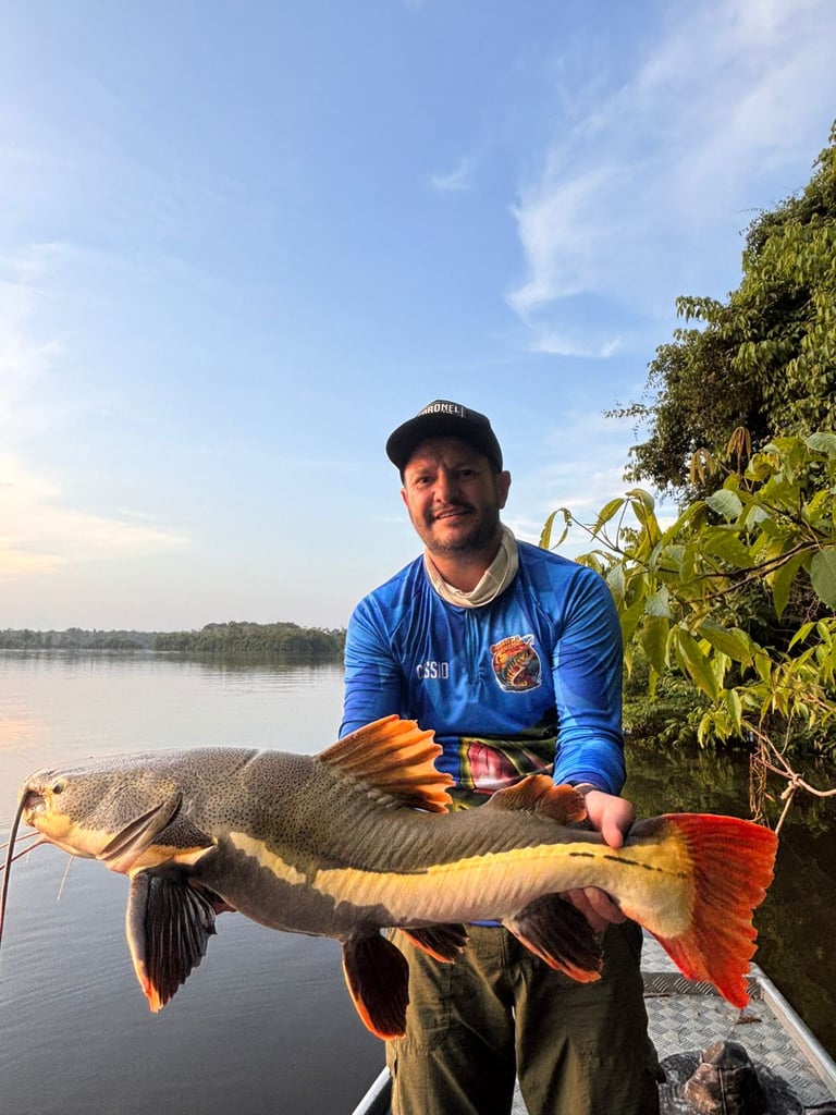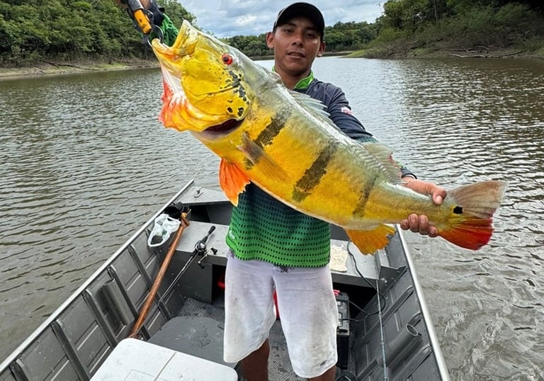 Experimente a emoção de pescar grandes peixes amazônicos em rios cristalinos.